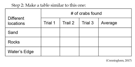 Step 3: Count the number of crabs at each location. The number of trials is up to you.